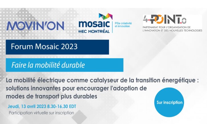 This content is not available in the selected language. Date 13 avril 2023, 8 h 30 à 16 h 30 Le 13 avril 2023, 4POINT0 et Mosaic-HEC Montréal tenaient la deuxième édition de leur Forum de mobilité durable, en partenariat avec Movin’On, l’écosystème d’anticipation stratégique et de co-innovation en mobilité durable. Cette journée […] Read more